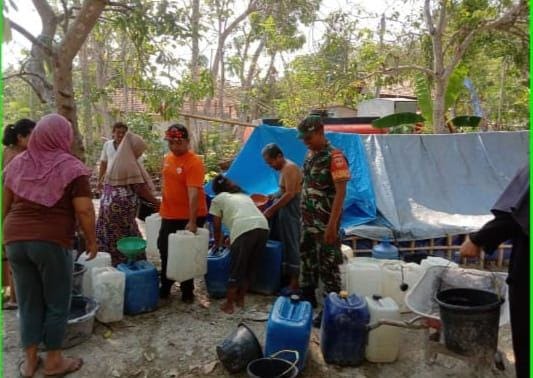 Kesulitan air bersih itupun mendapat perhatian dari sejumlah pihak, salah satunya BPBD setempat. Setidaknya terdapat ribuan liter air bersih yang saat ini disalurkan oleh pihak Badan Penanggulangan Bencana Daerah (BPBD) Kab. Sragen yang dibantu Babinsa setempat.