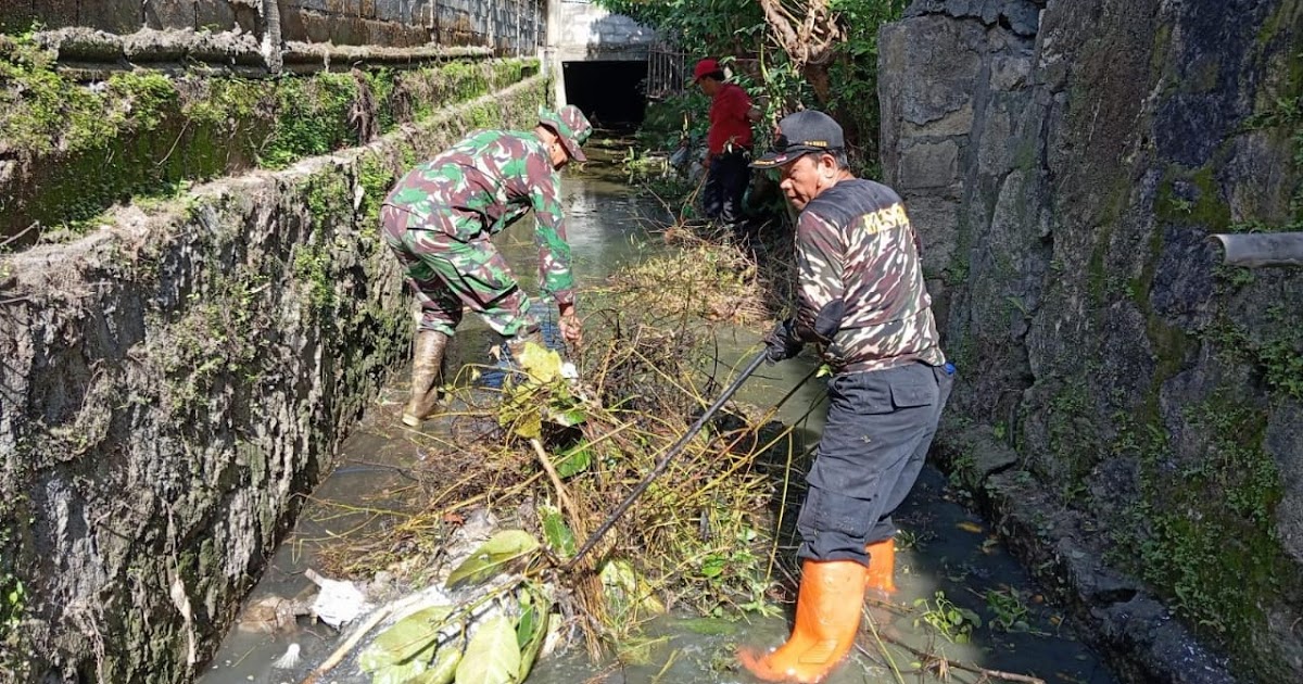 BERITA SOLO | SRAGEN — Bintara Pembina Desa (Babinsa) Koramil 18/Kalijambe Kodim 0725/Sragen Sertu Heriyanto bersama warga masyarakat melaksanakan gotong royong membersihkan saluran air di wilayah Dk.Soko Ds. Tegalombo Kec. Kalijambe, Jum’at ( 29/12/2023 )